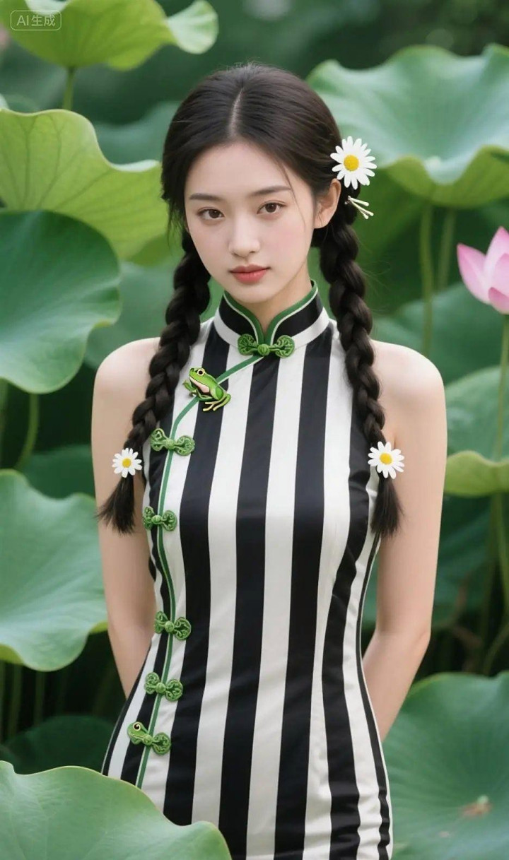 穿黑白条纹旗袍的女孩